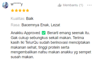 Iki TelurQu alternatif jajanan sehat dan mengenyangkan, terbuat dari 100% telur puyuh pilihan, tinggi zat besi dan protein yang dibutuhkan anak-anak di masa pertumbuhan. Iki TelurQu juga dapat dijadikan lauk untuk bekal makan siang di sekolah.